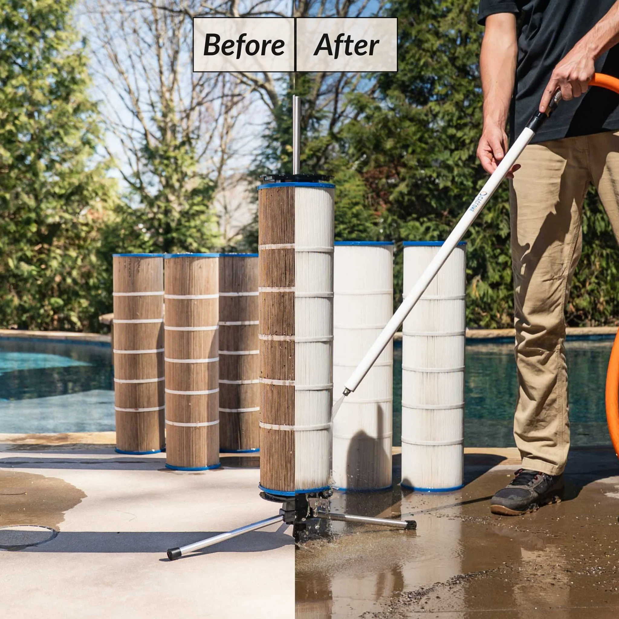 Thorough cleaning of your pool’s filter system to ensure maximum efficiency and clean, clear water.
